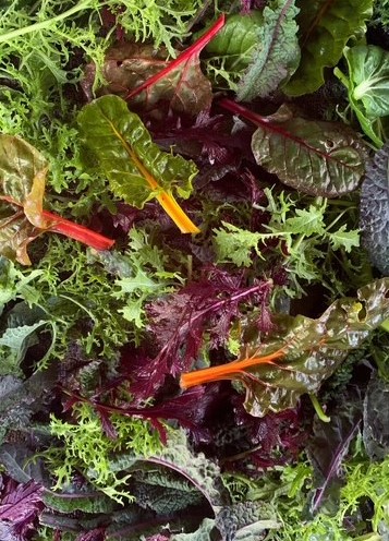 A customer favorite! Beautiful range of colors including rainbow chard, tat soi, purple and green mustards and other...